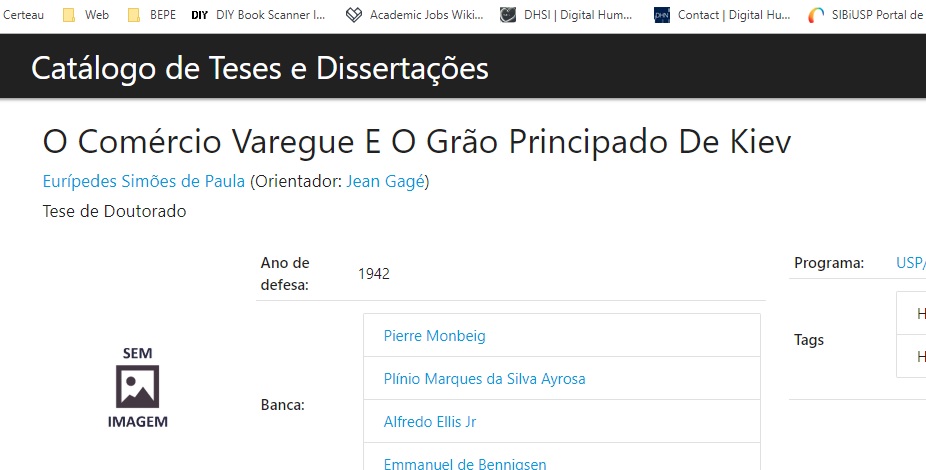 My first option was to use some existing software for digital cataloging or content management. After browsing around, I have found some applications that could do the job reasonably well, even if some customizing was always necessary. I thought Omekawas a bit of an overkill, since I was not planning on digitizing all the content of the dissertations – and even if I was, I would then have to deal with copyright issues (as far as I know, Brazil has no “fair use” doctrine, and even if it had, I don’t believe it would apply to my database). Other library catalog and institutional repository applications, such as D-Space and others, would be cumbersome to customize for some extra information I would like to have included in the database.